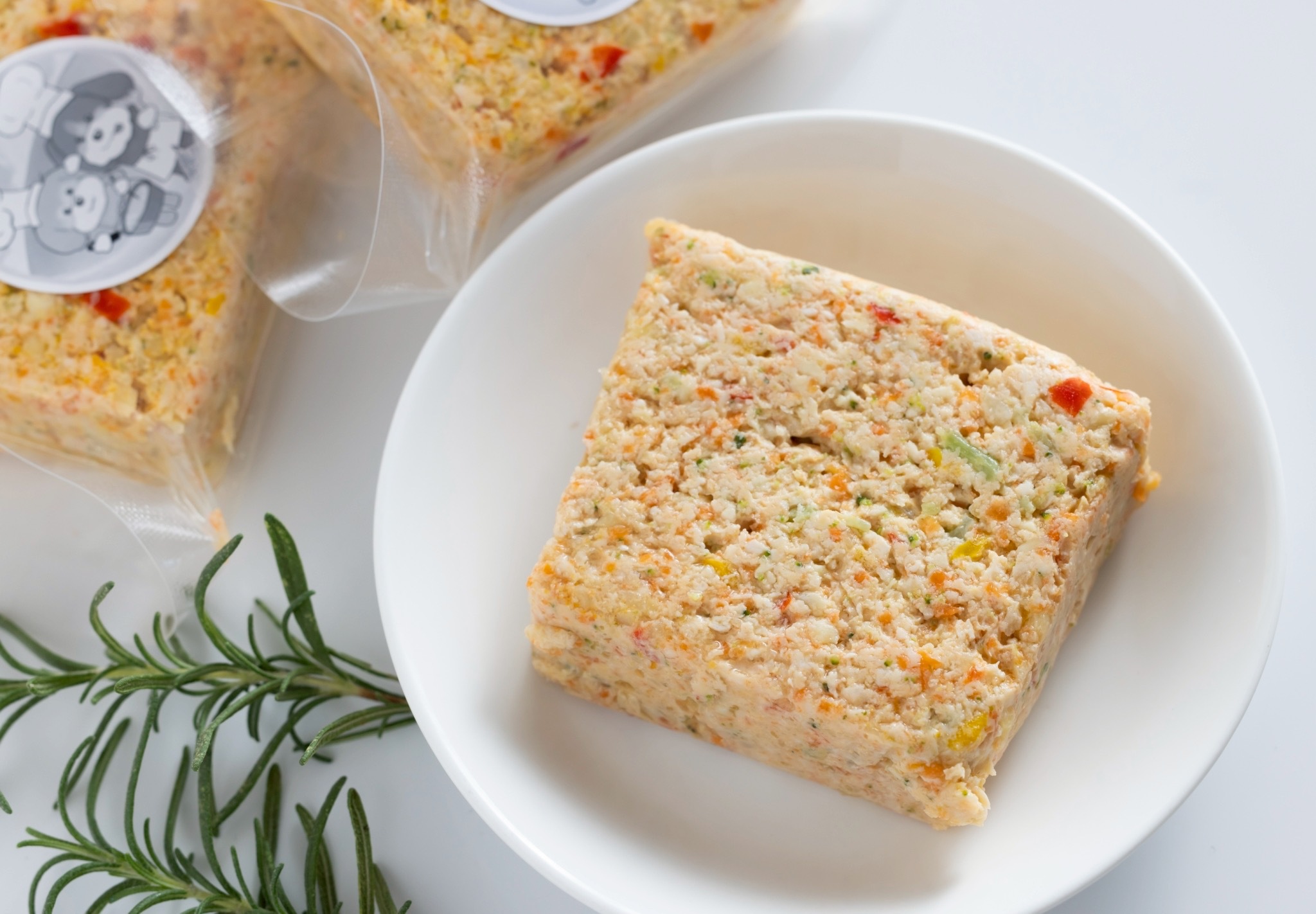 国産若鳥胸肉の脂と皮を丁寧に取り除き野菜たっぷりのミートローフです。手作り食やドライフードに混ぜてあげて下さい。